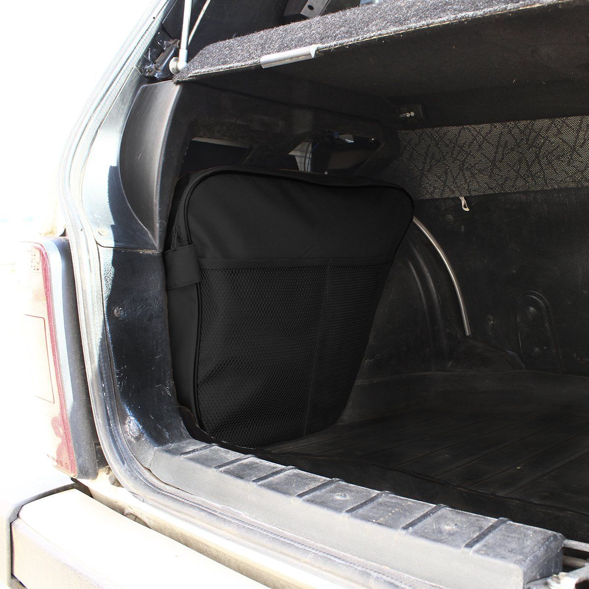 Изделие имеет одно вместительное отделение и закрывается на тракторную молнию. На передней части предусмотрены два кармана-сетки. Установка сумки занимает минимум времени, крепится в штатные отверстия в нишах багажного отделения.