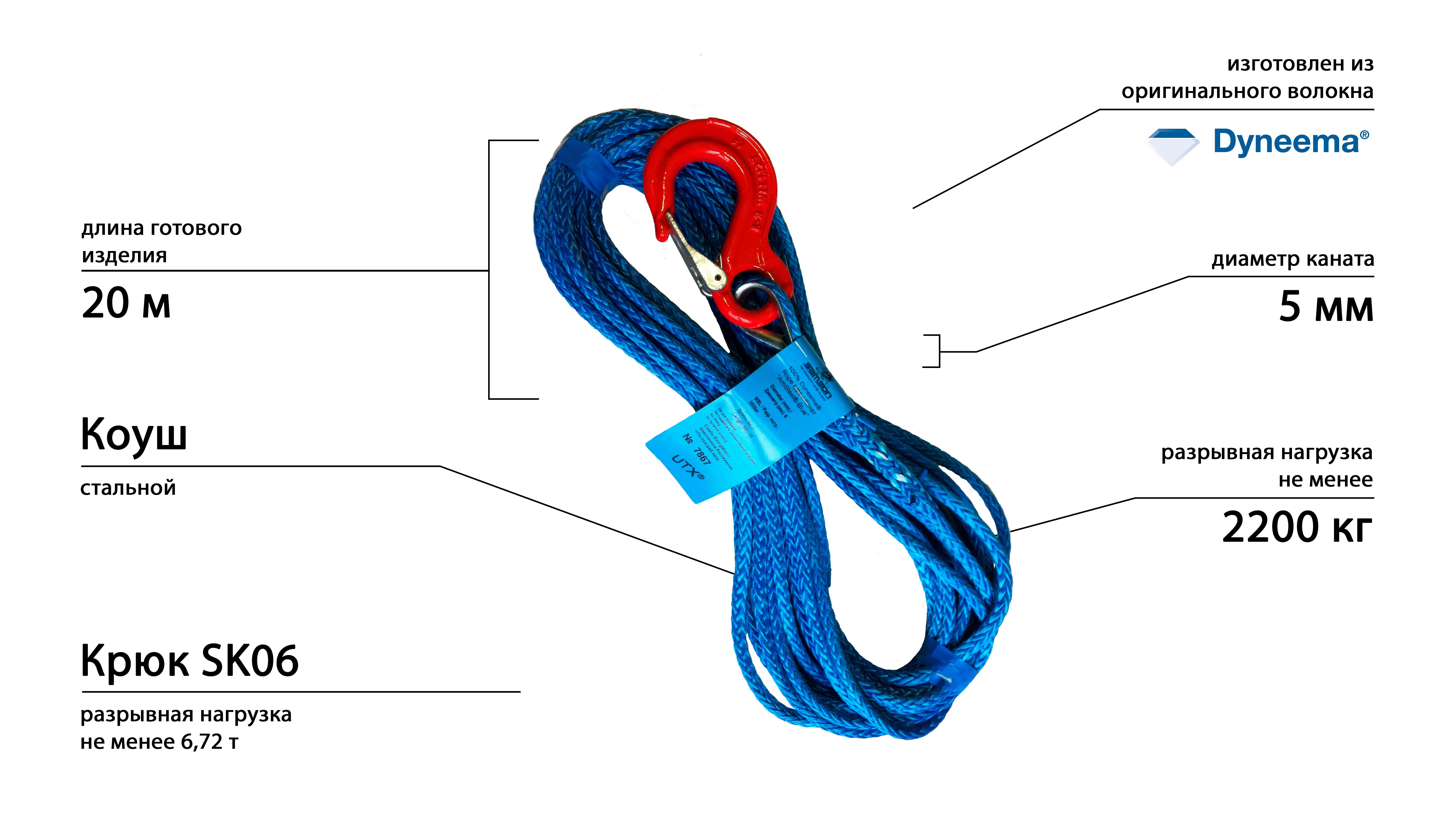 Тросы для лебедок из высокопрочного синтетического каната Samson «AmSteel®-Blue», произведенные из 100% оригинального волокна Dyneema SK78.