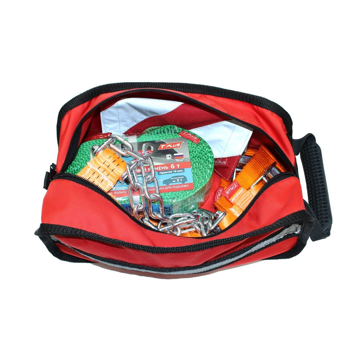 Для удобства использования предусмотрена прорезиненная ручка. Сумка достаточно компактна, чтобы поместиться под сидением автомобиля.